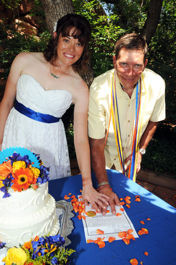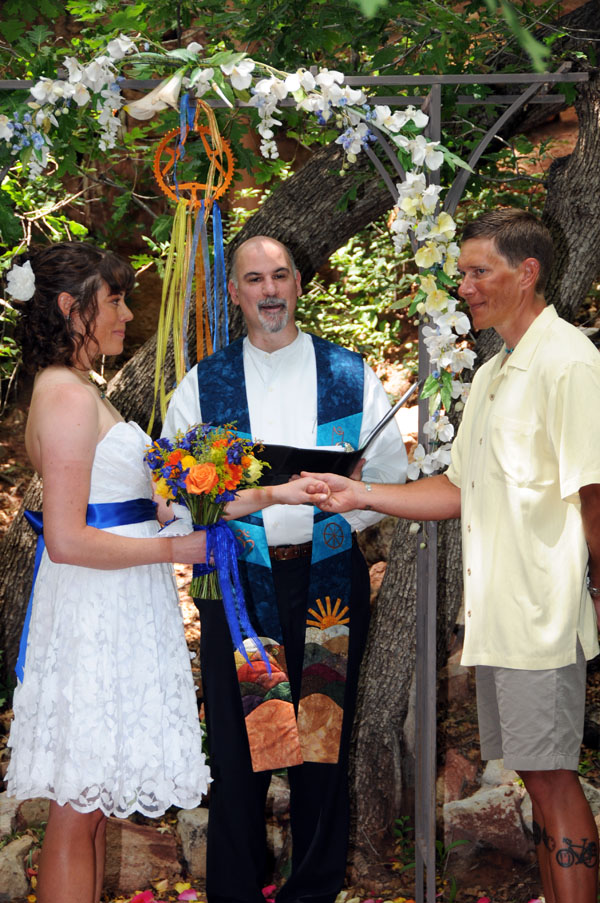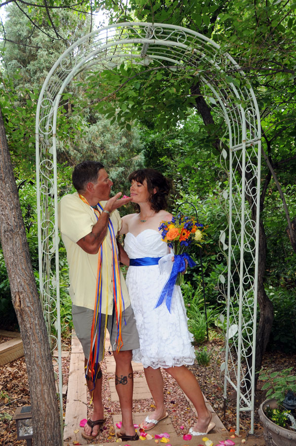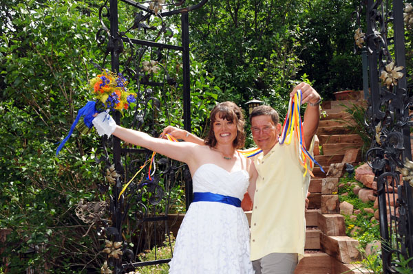 ![]() Janay & Shawne Married June 25, 2011 Janay & Shawne pedaled from California to Colorado to be married in a Bicycle-themed wedding! Their bicycles served as bridesmaid and groomsman during the ceremony, and they shared their first kiss as man and wife accompanied by the music of Queen's "Bicycle Race!" See if you can spot all the other bicycle-related wedding decorations! |